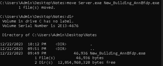 Rename the Server.exe file by typing New_Building_Ann and then paste the U202E character followed by fdp.exe. If copied correctly, you will see it represented as a square with a question mark in the middle.